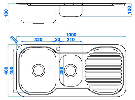 型號:106款式:單瀝水板雙盆安裝方式:嵌入式總尺寸:1000*480 mm大盆:320*400*180 mm小盆:210*288*120 mm