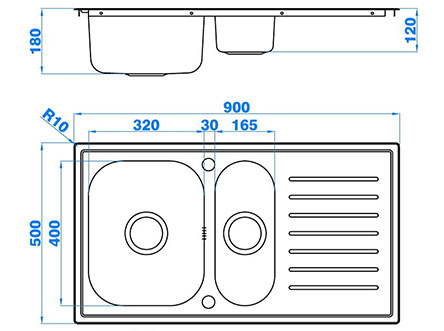 型號:150-H2款式:單瀝水板雙盆安裝方式:嵌入式總尺寸:900*500 mm大盆:320*400*180 mm小盆:165*400*120 mm