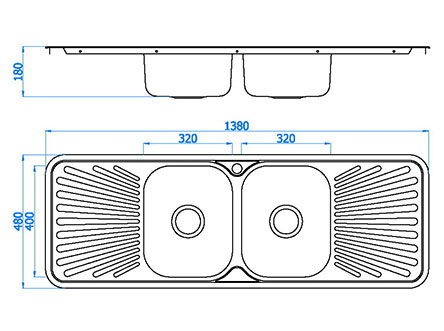 型號:125款式:雙瀝水板雙盆安裝方式:嵌入式總尺寸:1380*480 mm雙盆:320*400*180 mm